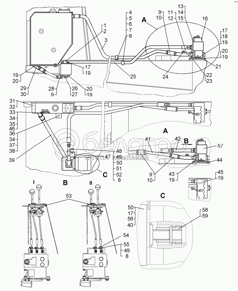 Каталог запасных частей к технике: ЧТЗ Т-10М. Установка гидросистемы