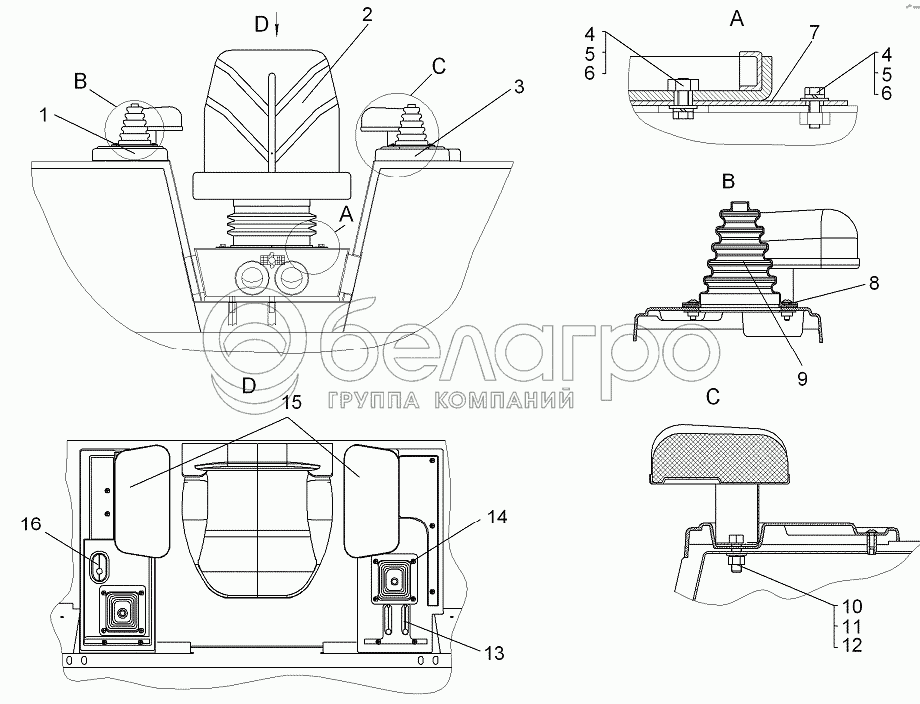 Каталог запасных частей к технике: ЧТЗ Т-10М. Установка сиденья (для трактора с гидромеханической трансмиссией