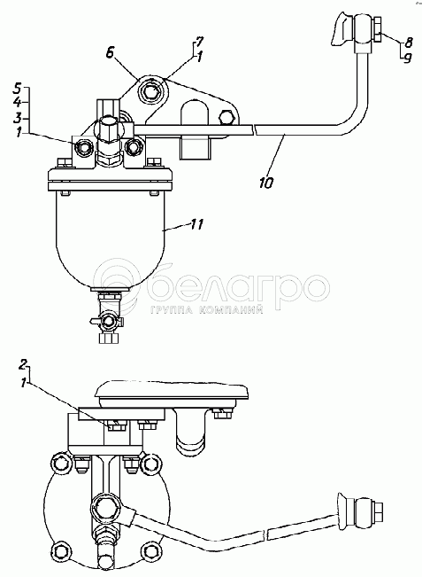 Каталог запасных частей к технике: ЧТЗ Т-10М. Установка топливного фильтра грубой очистки