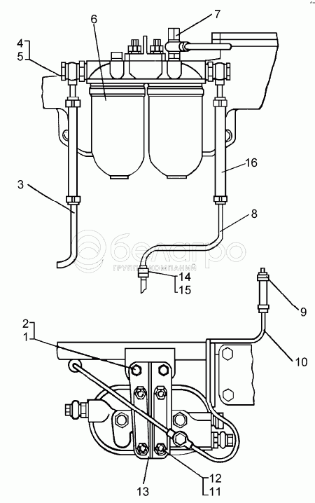 Каталог запасных частей к технике: ЧТЗ Т-10М. Установка топливного фильтра тонкой очистки