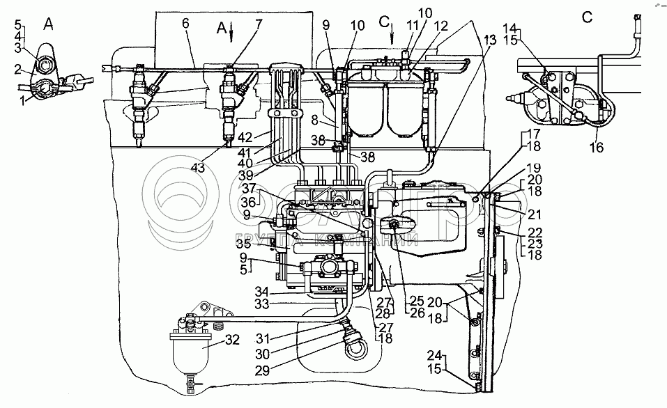 Каталог запасных частей к технике: ЧТЗ Т-10М. Установка топливной аппаратуры