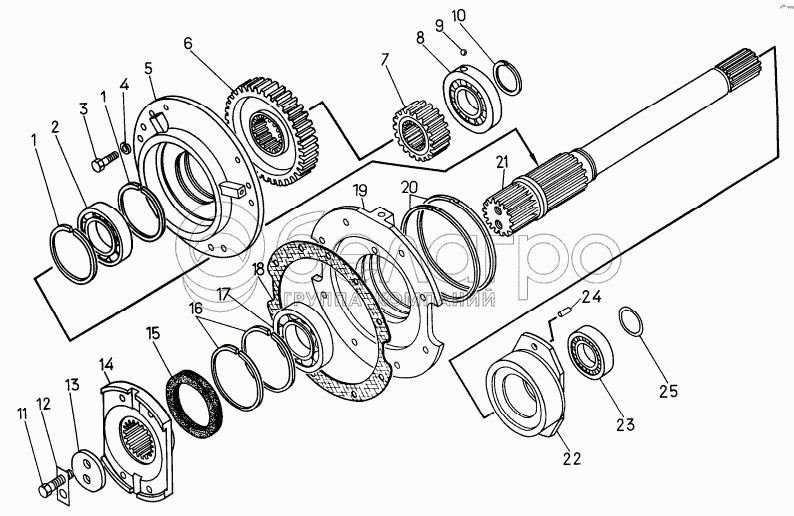 Каталог запасных частей к технике: ЧТЗ Т-10М. Вал с деталями