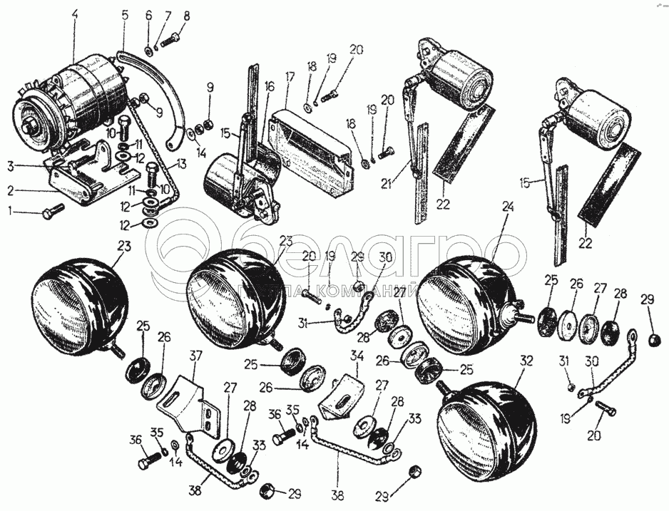 Каталог запасных частей к технике: ЧТЗ Т-130. Электрооборудование трактора (сборочные единицы)