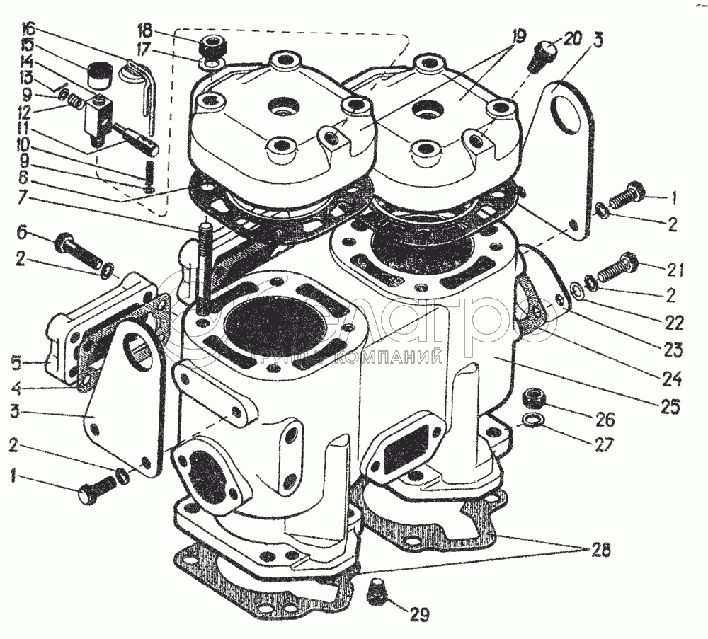 Каталог запасных частей к технике: ЧТЗ Т-130. Головка и блок цилиндров