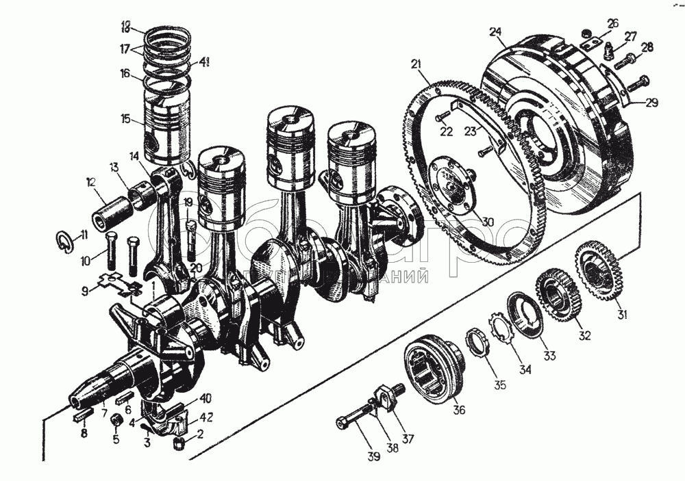 Каталог запасных частей к технике: ЧТЗ Т-130. Кривошипно-шатунный механизм 51-03-1СП