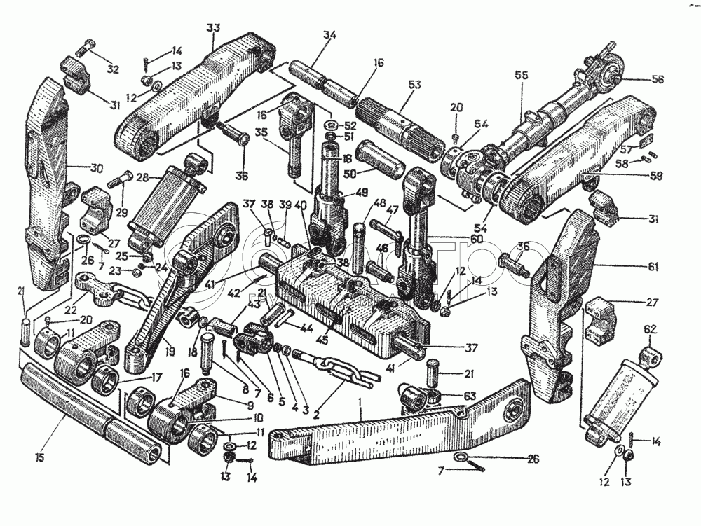 Каталог запасных частей к технике: ЧТЗ Т-130. Механизм навески комплект 266СП