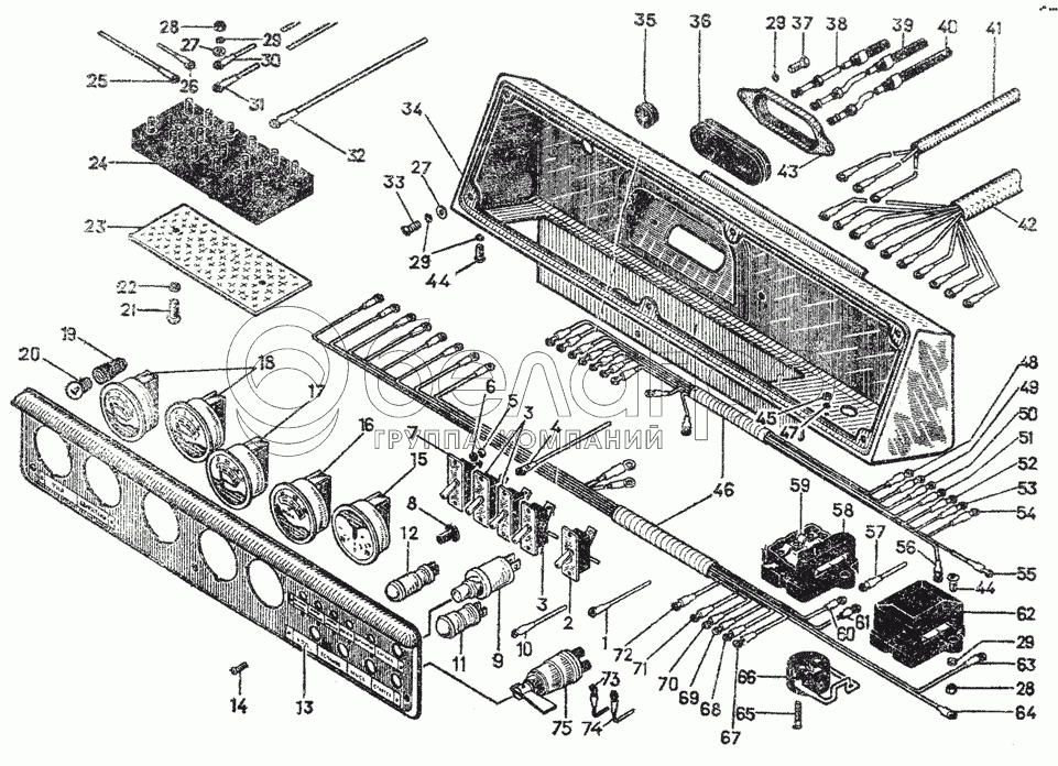 Каталог запасных частей к технике: ЧТЗ Т-130. Щиток приборов, комплект 18-10-394СП