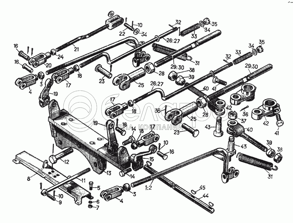 Каталог запасных частей к технике: ЧТЗ Т-130. Система рычагов управления трансмиссией