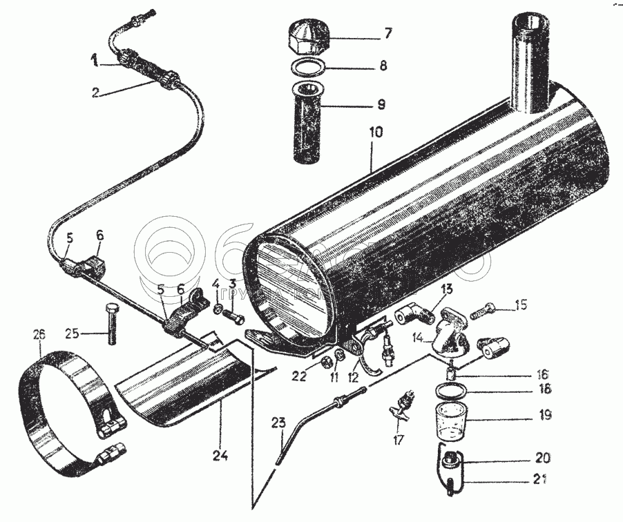 Каталог запасных частей к технике: ЧТЗ Т-130. Установка бензобачка 51-25-5СП