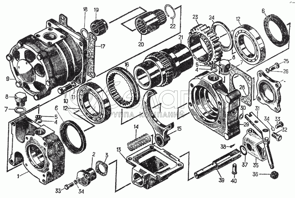 Каталог запасных частей к технике: ЧТЗ Т-130. Установка привода насоса 18-26-485СП