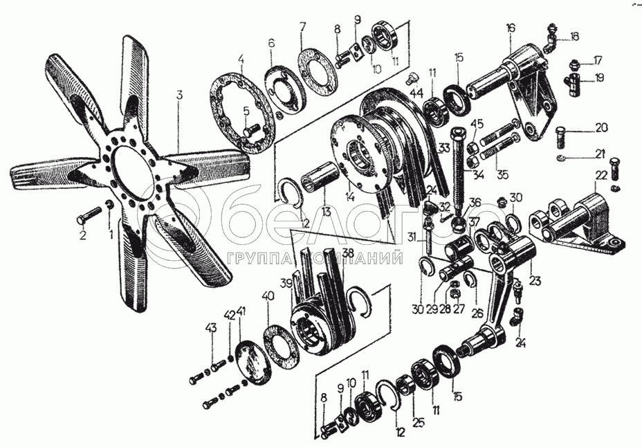 Каталог запасных частей к технике: ЧТЗ Т-130. Установка вентилятора 16-07-5СП