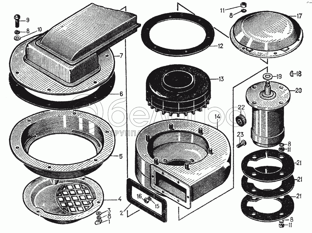Каталог запасных частей к технике: ЧТЗ Т-130. Установка вентилятора кабины 24-57-4СП