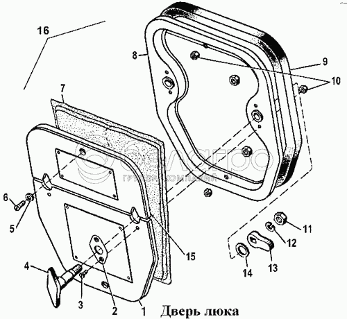 Каталог запасных частей к технике: ЧТЗ Т-170. Дверь люка