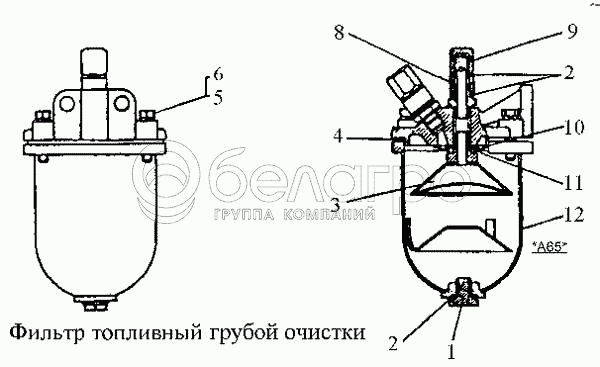 Каталог запасных частей к технике: ЧТЗ Т-170. Фильтр топливный грубой очистки