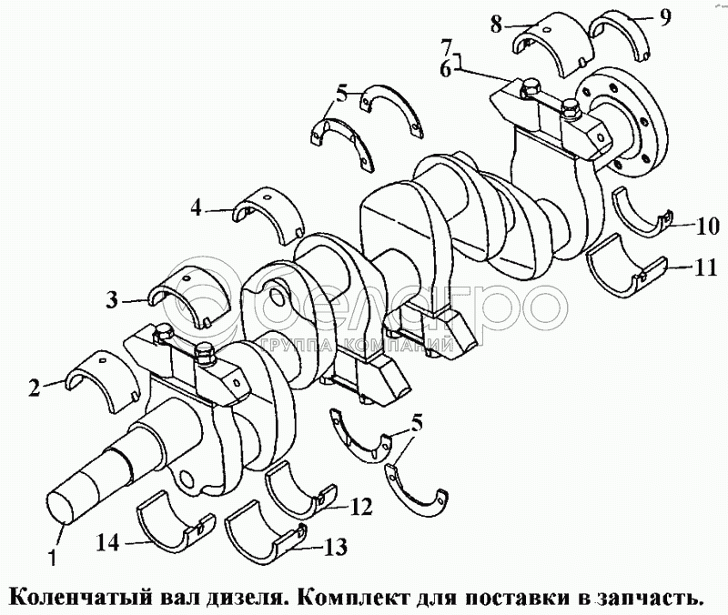 Каталог запасных частей к технике: ЧТЗ Т-170. Коленчатый вал дизеля. Комплект для поставки в запчасти