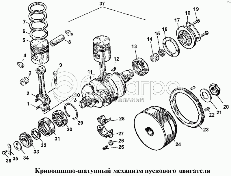 Каталог запасных частей к технике: ЧТЗ Т-170. Кривошипно-шатунный механизм пускового двигателя