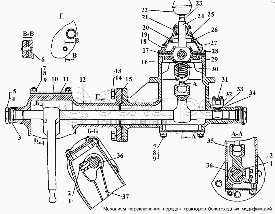 Каталог запасных частей к технике: ЧТЗ Т-170. Механизм переключения передач тракторов болотоходных модификаций