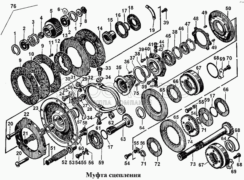 Каталог запасных частей к технике: ЧТЗ Т-170. Муфта сцепления
