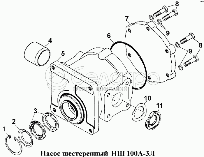 Каталог запасных частей к технике: ЧТЗ Т-170. Насос шестеренный НШ100А-ЗЛ
