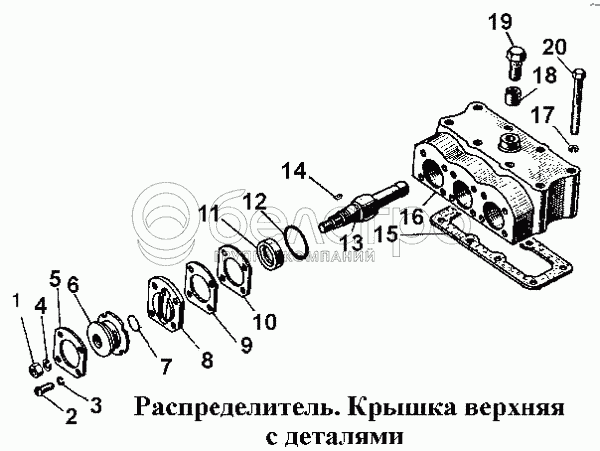 Каталог запасных частей к технике: ЧТЗ Т-170. Распределитель. Крышка верхняя с деталями