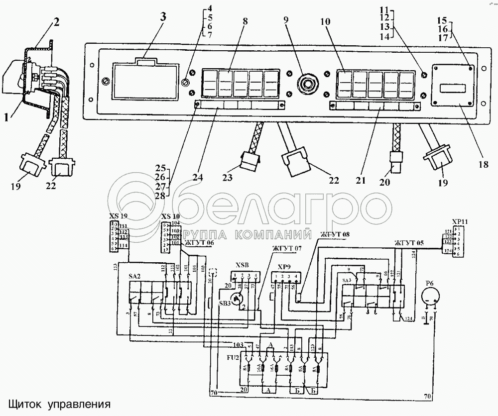 Каталог запасных частей к технике: ЧТЗ Т-170. Щиток управления
