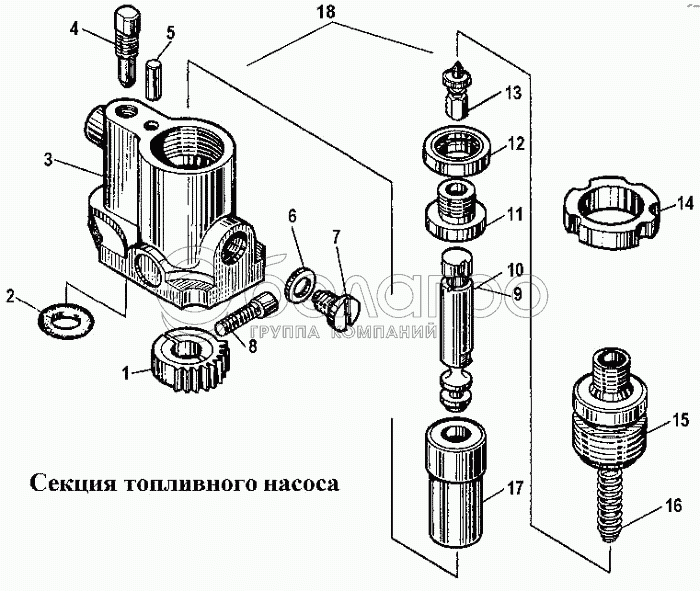 Каталог запасных частей к технике: ЧТЗ Т-170. Секция топливного насоса