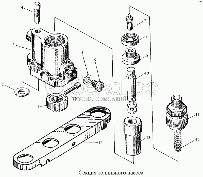 Каталог запасных частей к технике: ЧТЗ Т-170. Секция топливного насоса