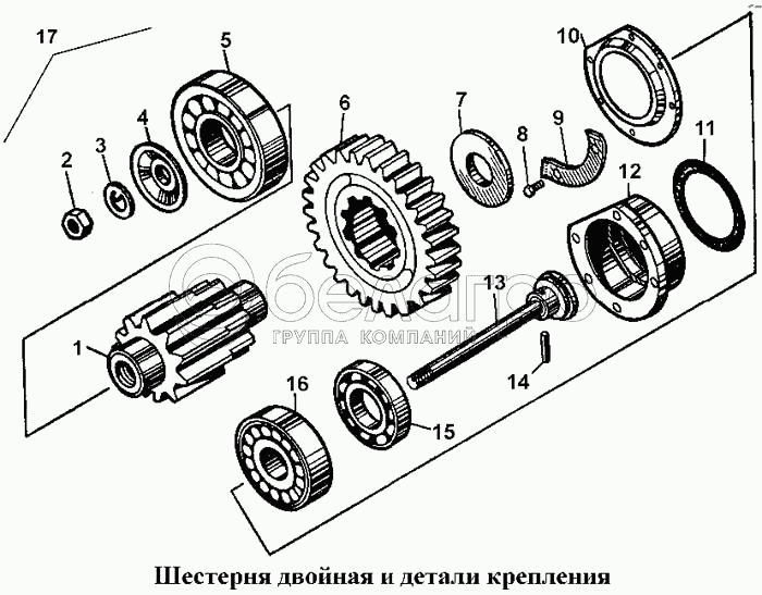 Каталог запасных частей к технике: ЧТЗ Т-170. Шестерня двойная и детали крепления