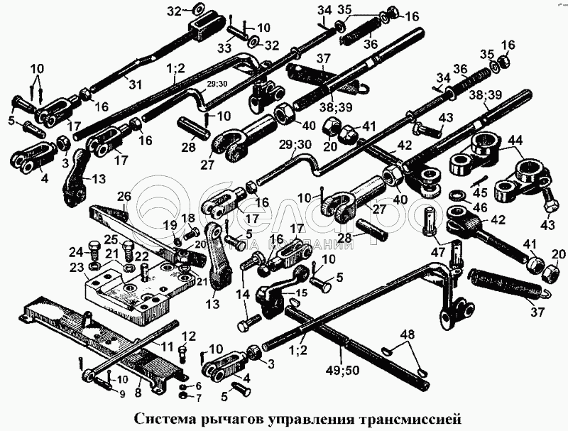 Каталог запасных частей к технике: ЧТЗ Т-170. Система рычагов управления трансмиссией