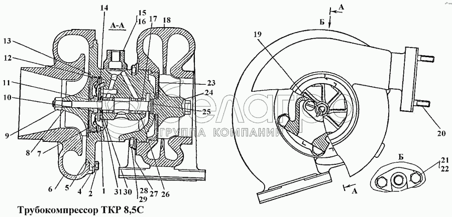Каталог запасных частей к технике: ЧТЗ Т-170. Турбокомпрессор ТКР 8,5 С