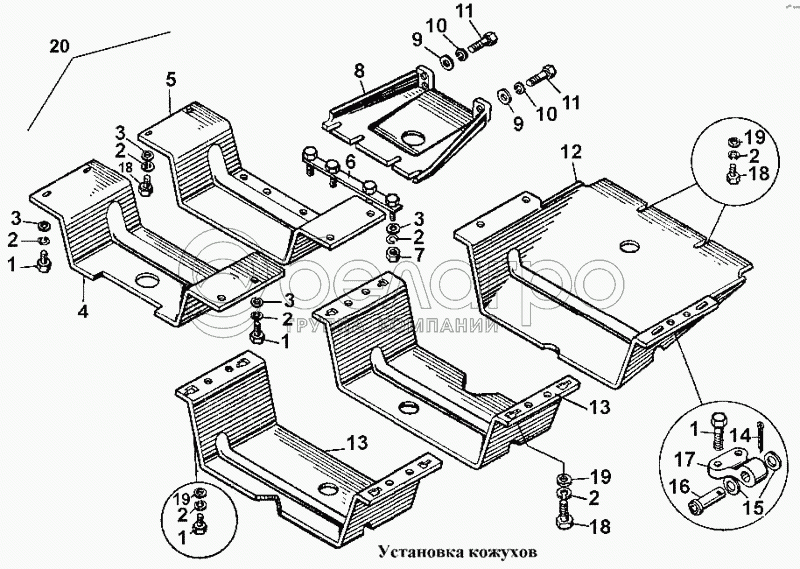 Каталог запасных частей к технике: ЧТЗ Т-170. Установка кожухов