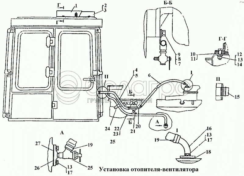 Каталог запасных частей к технике: ЧТЗ Т-170. Установка отопителя-вентилятора