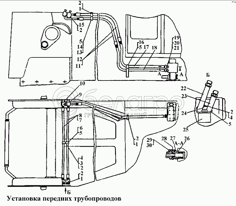 Каталог запасных частей к технике: ЧТЗ Т-170. Установка передних трубопроводов
