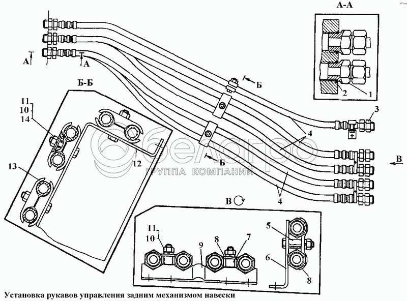 Каталог запасных частей к технике: ЧТЗ Т-170. Установка рукавов управления задним механизмом навески