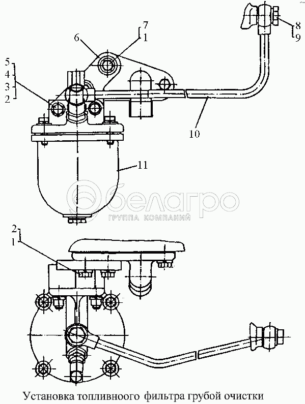 Каталог запасных частей к технике: ЧТЗ Т-170. Установка топливного Фильтра грубой очистки