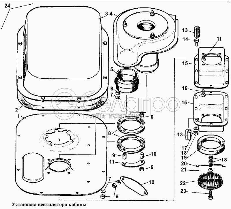 Каталог запасных частей к технике: ЧТЗ Т-170. Установка вентилятора кабины