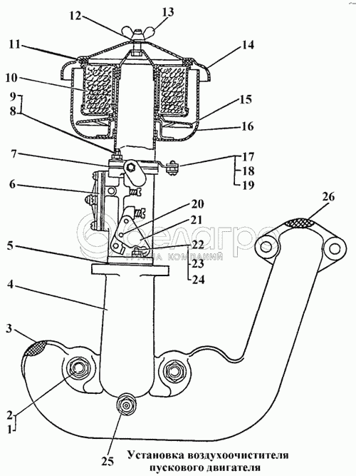 Каталог запасных частей к технике: ЧТЗ Т-170. Установка воздухоочистителя пускового двигателя