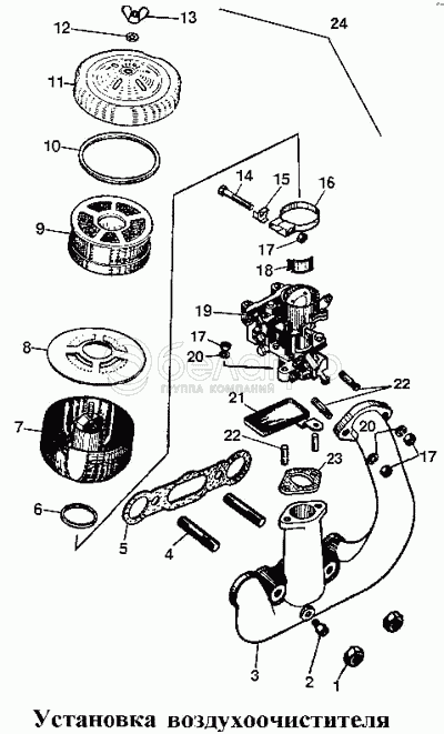 Каталог запасных частей к технике: ЧТЗ Т-170. Установка воздухоочистителя пускового двигателя