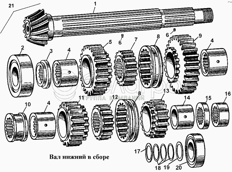 Каталог запасных частей к технике: ЧТЗ Т-170. Вал нижний в сборе