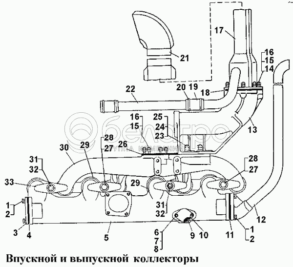 Каталог запасных частей к технике: ЧТЗ Т-170. Впускной и выпускной коллекторы