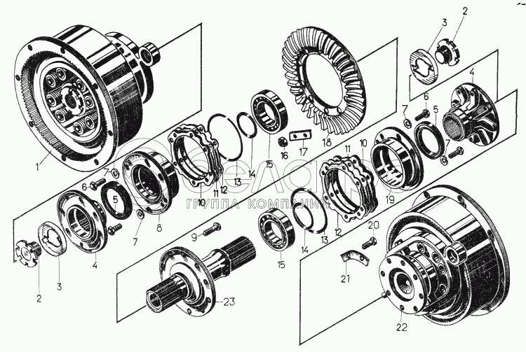 Каталог запасных частей к технике: ЧТЗ Т-170М-01. Главная передача с бортовыми фрикционами