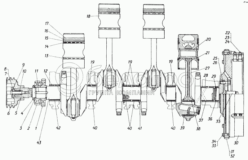 Каталог запасных частей к технике: ЧТЗ Т-170М-01. Кривошипно-шатунный механизм дизеля