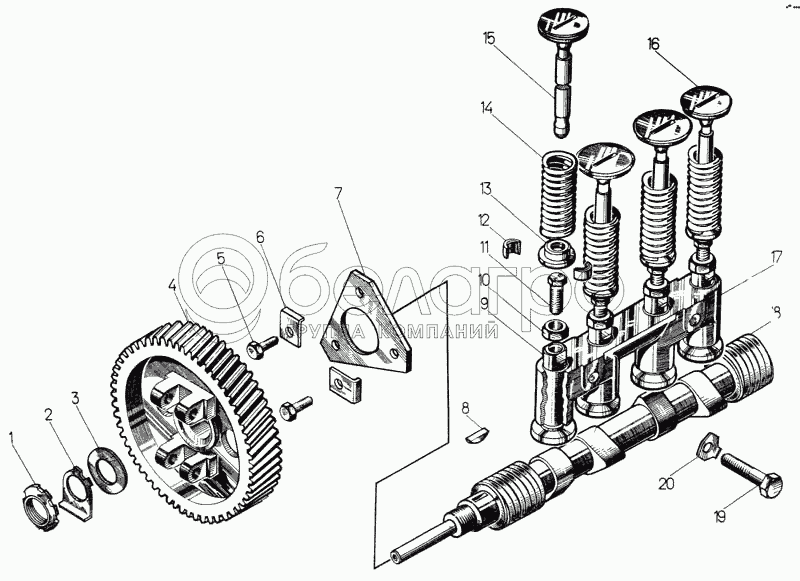 Каталог запасных частей к технике: ЧТЗ Т-170М-01. Механизм газораспределения пускового двигателя