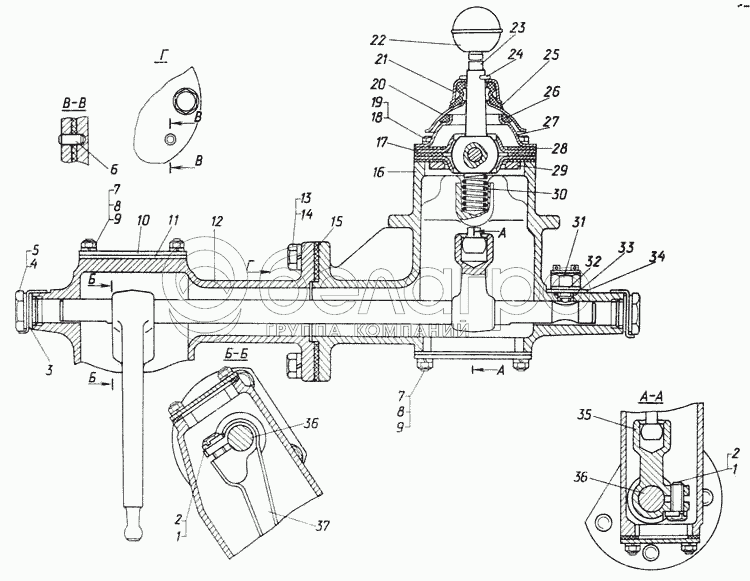 Каталог запасных частей к технике: ЧТЗ Т-170М-01. Механизм переключения передач тракторов болотоходных модификаций