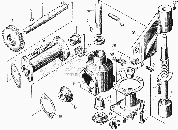 Каталог запасных частей к технике: ЧТЗ Т-170М-01. Механизм ручного вращения коленчатого вала пускового двигателя