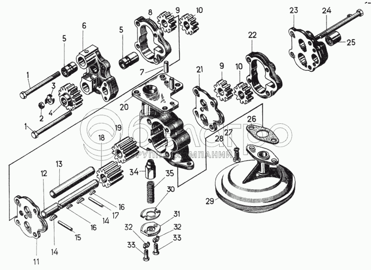 Каталог запасных частей к технике: ЧТЗ Т-170М-01. Насос масляный