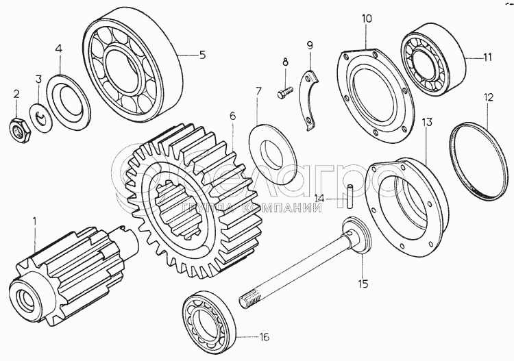 Каталог запасных частей к технике: ЧТЗ Т-170М-01. Шестерня двойная с деталями крепления