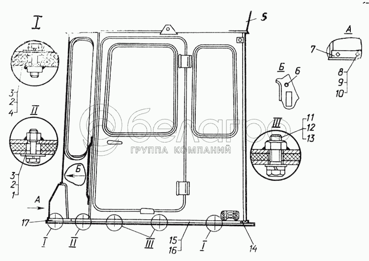 Каталог запасных частей к технике: ЧТЗ Т-170М-01. Установка кабины