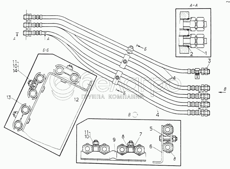 Каталог запасных частей к технике: ЧТЗ Т-170М-01. Установка рукавов управления задним механизмом навески