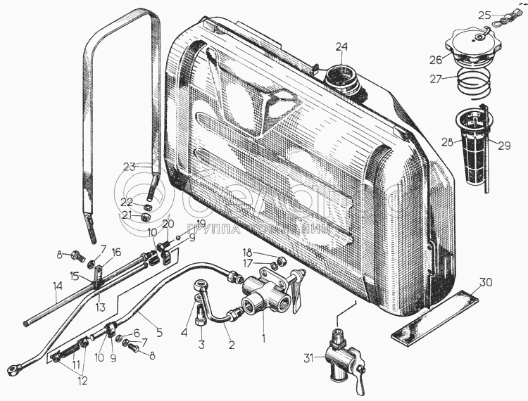 Каталог запасных частей к технике: ЧТЗ Т-170М-01. Установка топливного бака трактора
